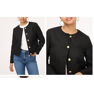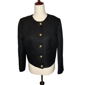 J. Crew Factory Textured Black Blazer with Gold Accents