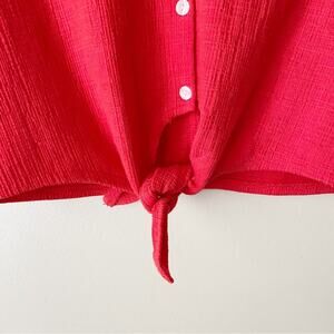 J. Crew Factory | Textured Tie Front Button Up Blouse Top Short Sleeves Red XXS