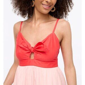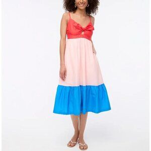 J. Crew Factory Tiered Sundress Midi Dress Cutout Tie Front Colorblock Size 14