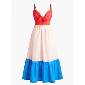 J. Crew Factory Tiered Sundress Midi Dress Cutout Tie Front American Sail Colorblock
