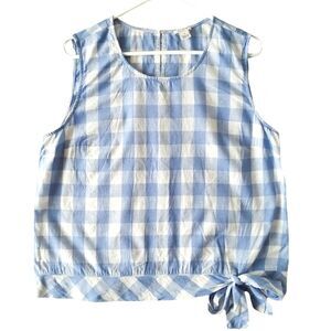 J. Crew Factory Top Cotton Linen Blue White Gingham Sleeveless Tie Front Women's Sz 14