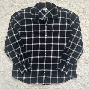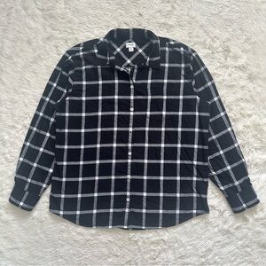 J. Crew Factory Top Flannel Shirt Button Down Long Sleeve Cotton Black White M