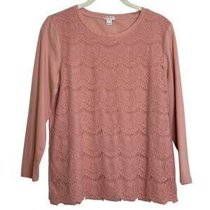 J. Crew Factory Knit Top Small Pink with Crochet Lace Overlay Style F5016