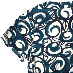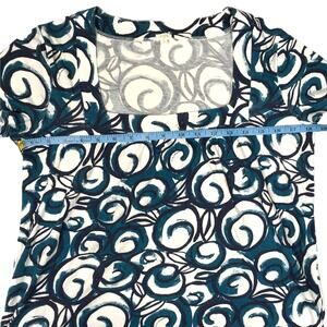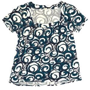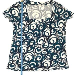 J. Crew Factory Top Square Neck Short Sleeve Swirl Pattern Blue Teal Women's S