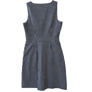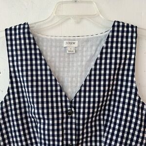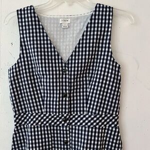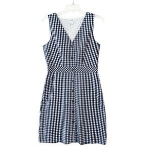 J. Crew Factory V-neck Button-front Dress in Gingham. Sleeveless. Front button closure. On seam side pockets. Lined. Item L6979.