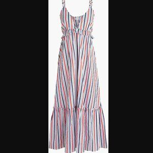 J Crew Factory White Blue Red Strappy V-Neck Tiered Sleeveless Midi Dress Medium