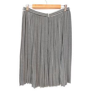 J. Crew Factory White Black Houndstooth Print Pleated Midi Skirt 12P