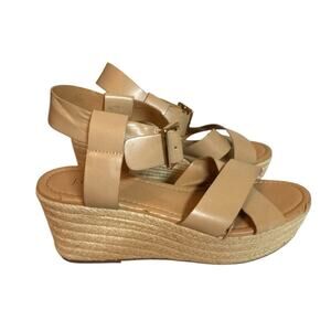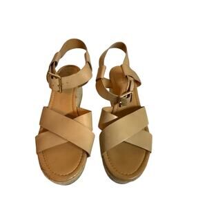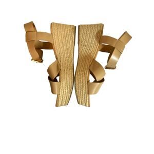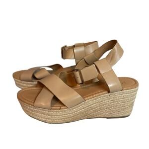 J. Crew Factory Women Flatform Espadrille Sandals Criss-Cross Strap Size 9 Beige