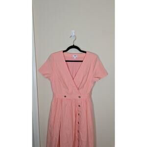 J. Crew Factory Women Light Coral Peach Cotton Button Front Midi Wrap Dress Sz 6