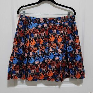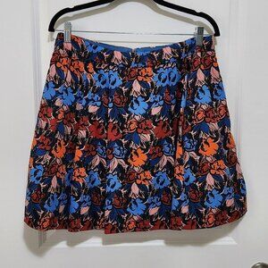 J. Crew Factory Women's 10 Floral Pleated Mini Skirt Lined Navy Blue Zip Closure