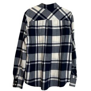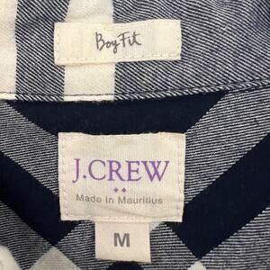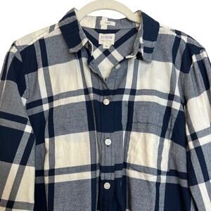 J Crew Factory Women's Boy Fit Shirt Medium Blue Plaid Lightweight Flannel Button