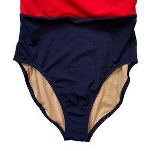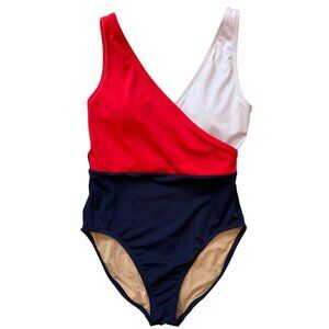 J Crew Factory Women's One Piece Swimsuit M Red White Blue Patriotic Colorblock