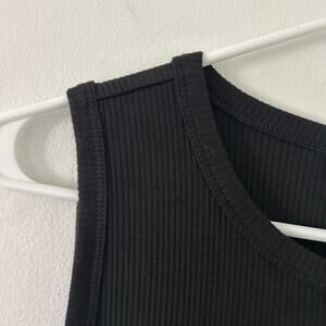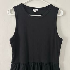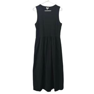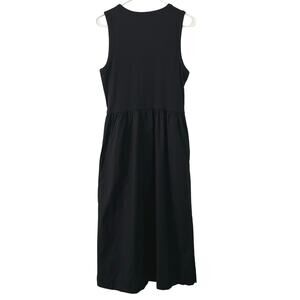 Features: crew neck, sleeveless, side pockets, ribbed bodice, pullover style, midi length, black, cotton/Tencel modal/elastane