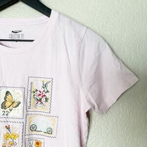 J. Crew Factory Womens Shirt Stamps Graphic Tee Pink Size Small