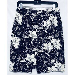 J Crew Factory Womens Size 2 The Pencil Skirt Black White Floral Lined