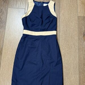 J. Crew Factory Women's Suiting 100% Wool Sheath Dress Navy/Tan Sz 2P NWT