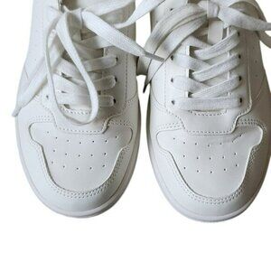J Crew Factory, Like new, women's white with green accents women's size 8 with leather uppers, tie tennis shoe/sneaker.