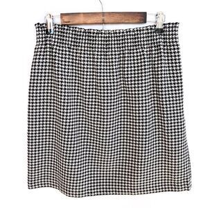 J. Crew Factory Wool Blend Black White Houndstooth Plaid Sidewalk Skirt 10