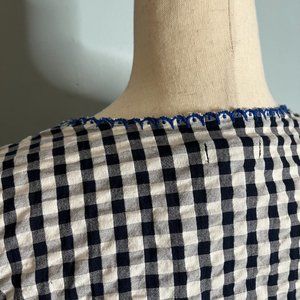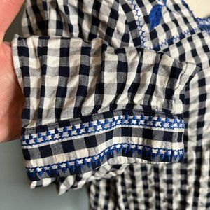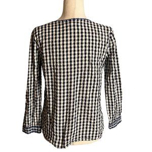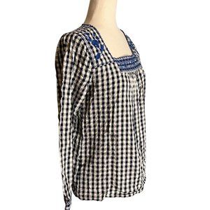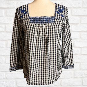 J. Crew Factory XS Gingham Square Neck Top w Embroidery Plaid Blouse Boho Black