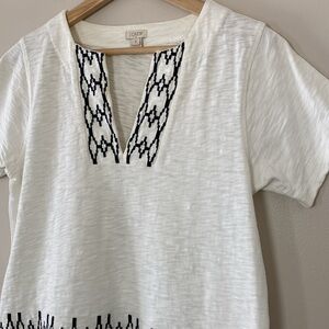 J. Crew Factory geometric-trim Top V neck short sleeve 100% Cotton Size S