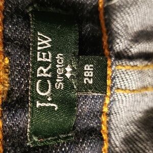 excellent preowned condition size 28R. Crew Factory matchstick straight leg jean. dark wash. stretch jean. waist 16" rise 8" inseam 32"