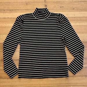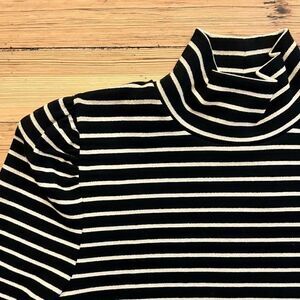 J. Crew Factory puff sleeve sparkle stripe turtleneck. Size XL. NWT. Excellent new condition. Subtle sparkle gold stripe. Puff sleeve gather. Fitted. Stock pic for style reference.
