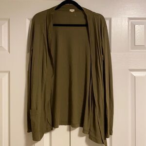 J. Crew Factory Army Green Open Cardigan Top. Two side pockets. Super soft and comfortable. Made of cotton. Gently worn. Size M.