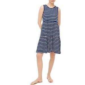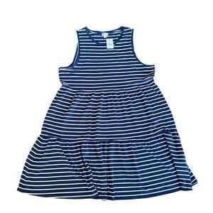 J. Crew Factory Striped Tiered Knit Dress Large Blue White NWT
