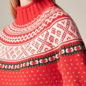 J. Crew Fair Isle 2025 Rollneck Sweater in Red Ivory NWT Size S