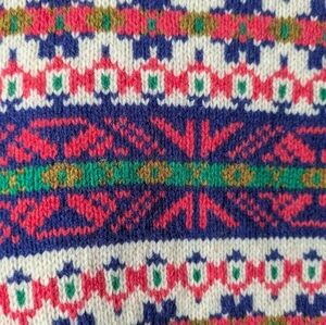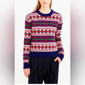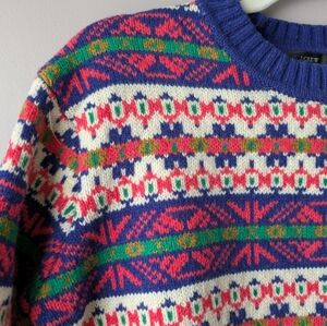 Vibrant crewneck sweater with intricate patterns. Perfect for casual wear. Adds a splash of color to any outfit.