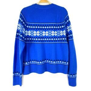 J. Crew Fair Isle Sweater Women L Blue Alpaca Merino Wool Blend Nordic Crewneck