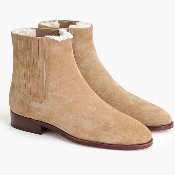 J. Crew Faux Fur Lined Suede Leather Chelsea Ankle Boots In Melted Caramel Tan 7.5