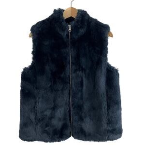 J. Crew Faux Fur Navy Blue Vest Women Size Medium