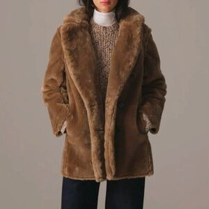J. Crew Faux Fur Peacoat Brown Women’s Size XL NEW