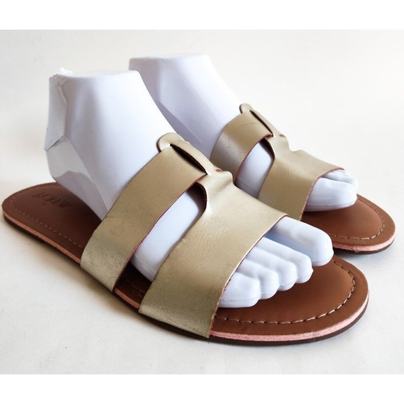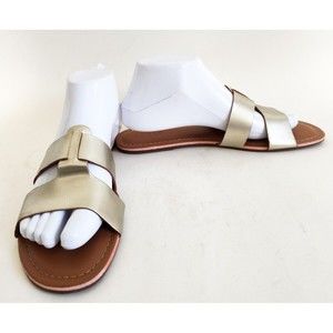 J Crew Faux Vegan Leather Slide Sandal Women's Sz 9 Metallic Gold Minimalist EUC