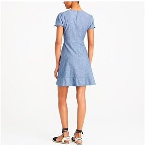 J. Crew Faux Wrap Chambray Denim Ruffled Dress Blue Womens 4 summer