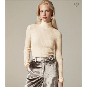 J. Crew Featherweight Cashmere Turtleneck Sweater With Rhinestones Buttercream