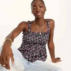 J. Crew Featherweight Smocked Satin Tank S NWT Twilight Berry BG301