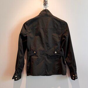 J. Crew Field Jacket, size small, dark hunter's green, excellent condition (like new), 100% cotton, gold snap buttons, great with a button up, t-shirt or light sweater underneath. Great for layering and dressing it up or down.