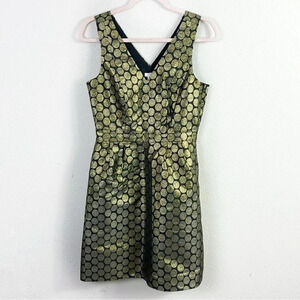 J. Crew Fit & Flare Black w/ Metallic Gold Dot Jacquard V-neck Mini Dress size 2
