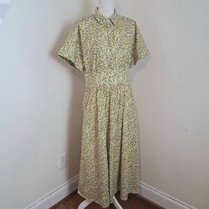 J. Crew Fitted Waist Shirtdress In Butter Yellow with Liberty Fabric Size 12