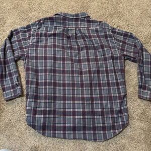 Upgrade your casual wardrobe with this classic and stylish J.Crew flannel shirt in a men's size XL. The shirt features a plaid pattern in a brushed blue color, made of 100% cotton fabric that is both breathable and machine washable. The long-sleeved shirt has a collared neckline and button-up closure, making it perfect for casual occasions in all seasons.