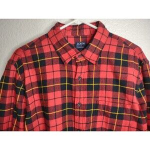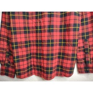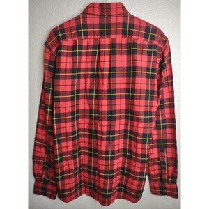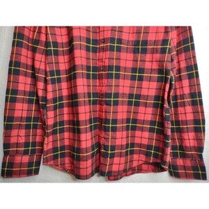 J Crew Flannel Shirt Men's Large Buffalo Plaid Red Black Long Sleeve Cotton