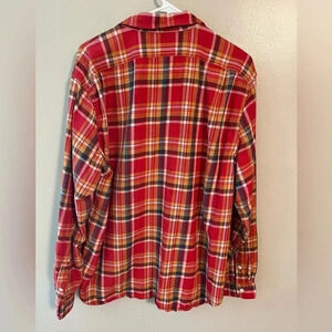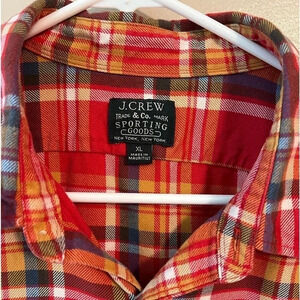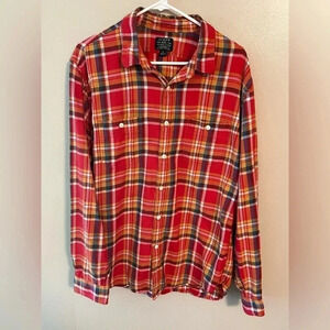 J Crew Flannel Unisex Casual Button Down Shirt Workwear Plaid XL Orange Red Blue