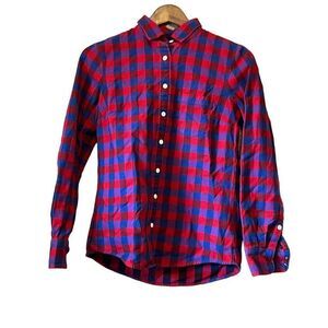 J. Crew Flannel Red Blue Poppy Plaid Boy fit Shirt button up size 0