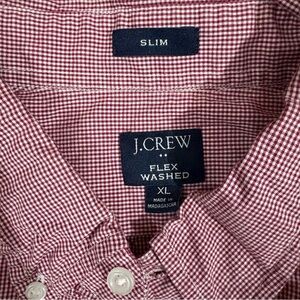 This is a J.CREW slim fit button-down shirt for men in size XL. It features a red plaid pattern in a cotton blend material, making it both stylish and comfortable. The shirt has a button-down collar and long sleeves, suitable for a casual or semi-formal look. The slim fit design adds a flattering touch to the overall appearance, making it a versatile wardrobe staple for any fashion-conscious individual.
