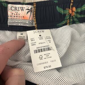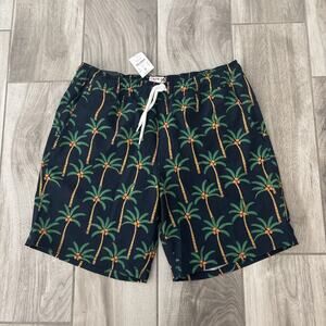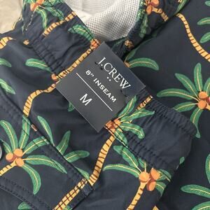 J Crew Flex Swimwear Swim Trunks Mens Sz M Blue Palm Trees Mesh Lined NWT