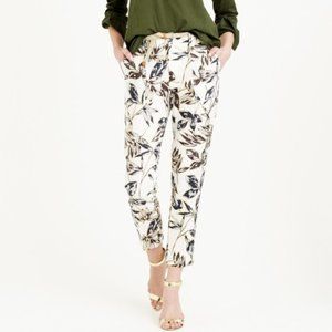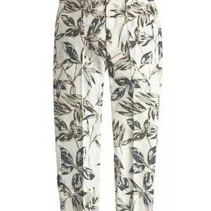 Stylish ankle pants with floral print. Features a blend of white and blue. Perfect for casual or formal wear.