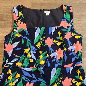 J. Crew Floral Basketweave Square Neck Midi Shift Dress Womens Size 14 Lined EUC