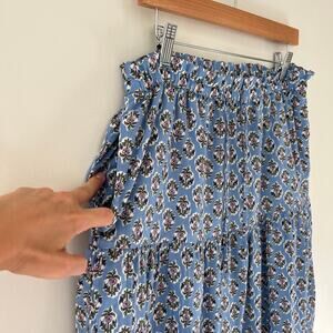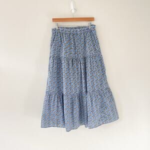 J. Crew Floral Block Print Blue Tiered Maxi Skirt, Size Small